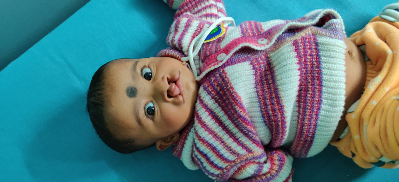 8months old baby with normal birth history was brought with features of multiple congenital anomalies with normal development history. The baby had cleft lip, cleft palate, preauricular tags, ectrodactyly and dysplastic nails. Overall it was spot diagnosis of Ectrodactyly-ectodermal dysplasia-cleft syndrome(EEC syndrome). Genetic study report is awaited.